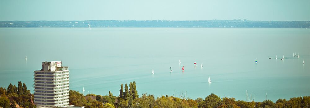 Balatonalmádi a Balaton északkeleti csücskében, a 71-es út mentén fekszik, a víz felé nyitottan, nyugati és északi oldalról dombokkal övezve, amelyek mintegy szélárnyékot teremtve megóvják a települést az uralkodó szelektől, és egy kellemes, mediterrán klímát biztosítva az itt élőknek, és a városba érkezőknek.